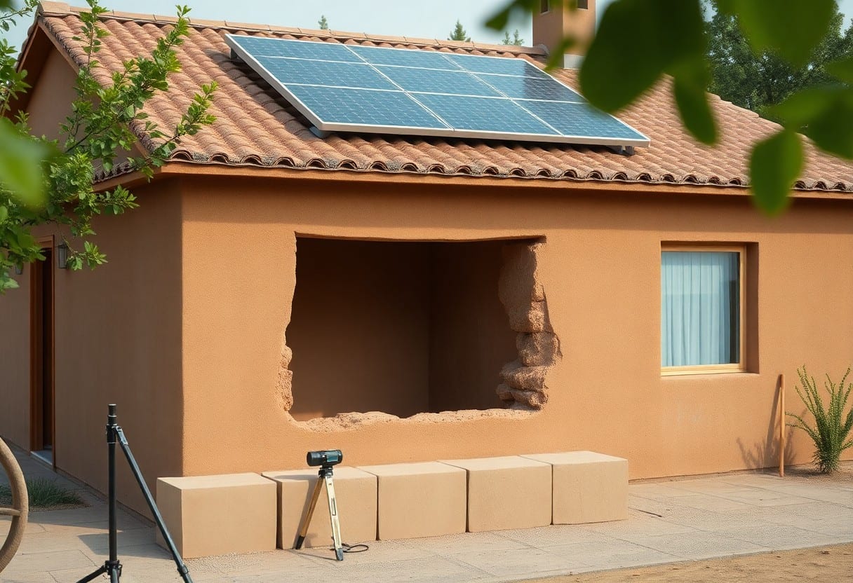 Außerdem nutzt du bei Lehmbauten die hohe thermische Masse, die tagsüber Wärme speichert und nachts langsam abgibt, wodurch Temperaturschwankungen gemildert und Spitzenlasten deutlich reduziert werden; mineralische Bindungen adsorbieren VOCs, verbessern die Luftqualität, doch bei unsachgemäßer Konstruktion können Feuchteschäden auftreten, denen du vorbeugen musst.